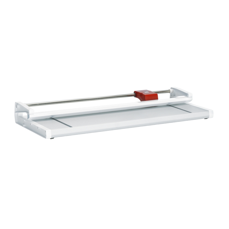 Robust, safe and easy to use, the IDEAL 0075 manual rotary trimmer with automatic clamping bar is capable of precision cutting up to a 75-cm length, making it suitable for a wide range of office and graphic applications. Made of anodised aluminium, with impact-resistant plastic side brackets and non-slip rubber feet, this is a desktop trimmer that is built to last.