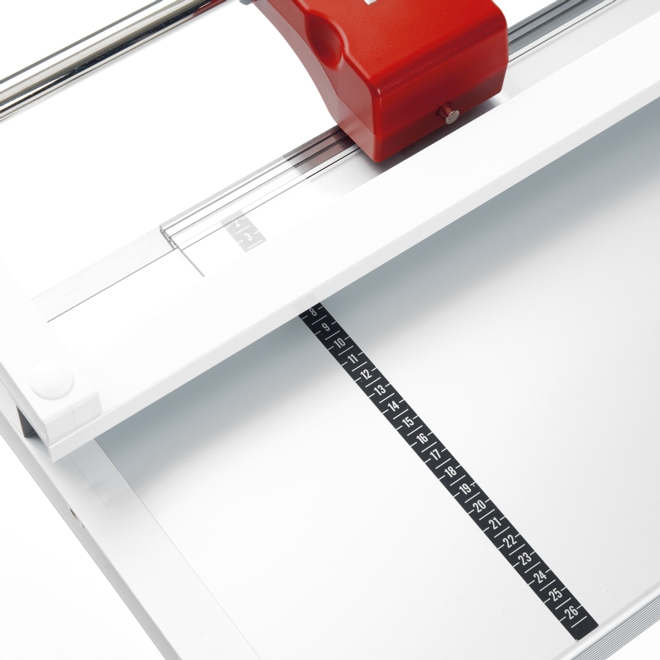 To help ensure accurate trimming, the IDEAL 0075 has two measuring scales in centimetres on the cutting table.